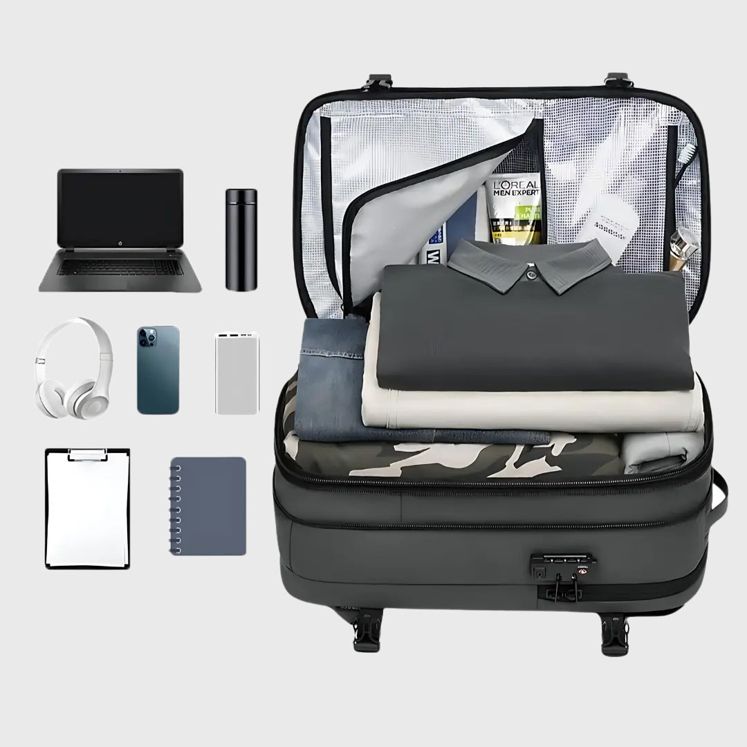 Grâce au système de compression sous vide intégré, vous pouvez éliminer l'excès d'air de vos vêtements et augmenter votre capacité de rangement jusqu'à 50 %. Rangez plus d'articles dans le même espace sans encombrement ni poids supplémentaires. Idéal pour les voyages d'affaires, les vacances prolongées ou pour tous ceux qui privilégient un voyage efficace et organisé.