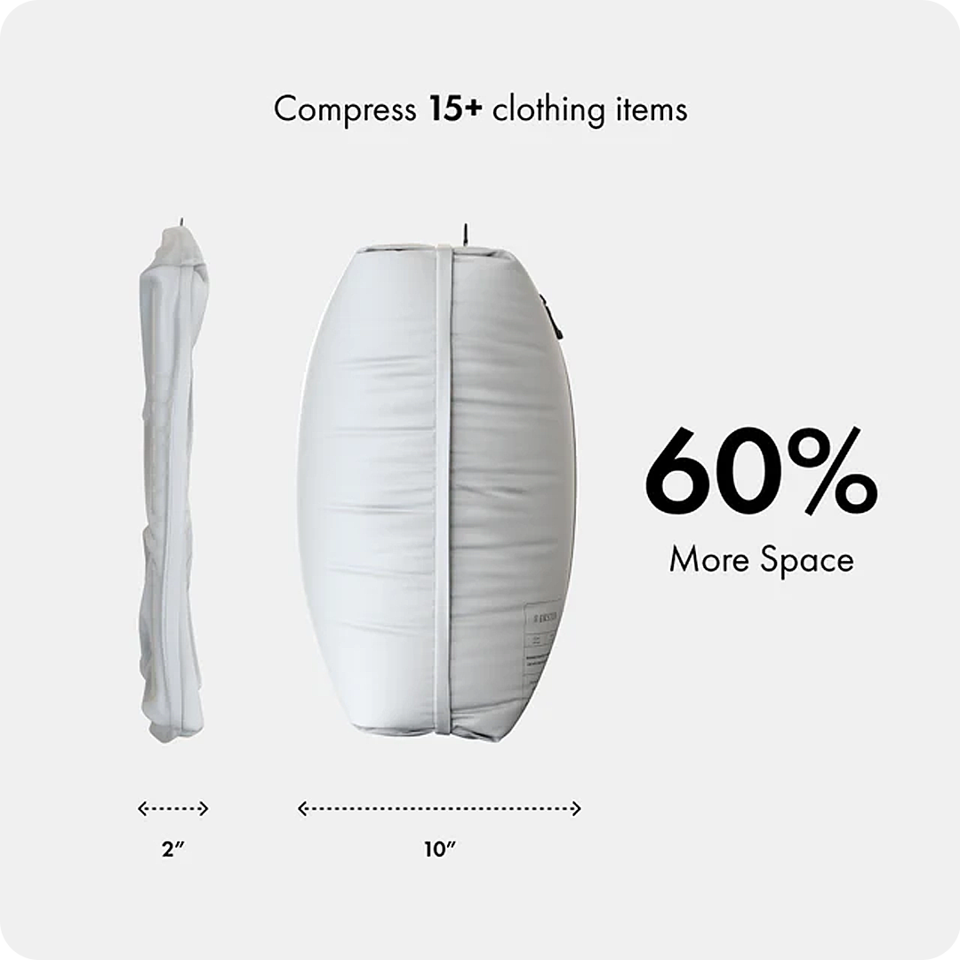 Grâce à sa technologie de compression de précision, ce kit réduit les poches d'air et compacte efficacement vos vêtements. Rangez jusqu'à 60 % d'affaires en plus dans le même sac et voyagez léger sans sacrifier l'essentiel. Plus de place pour vos souvenirs, moins de stress lié à l'espace.